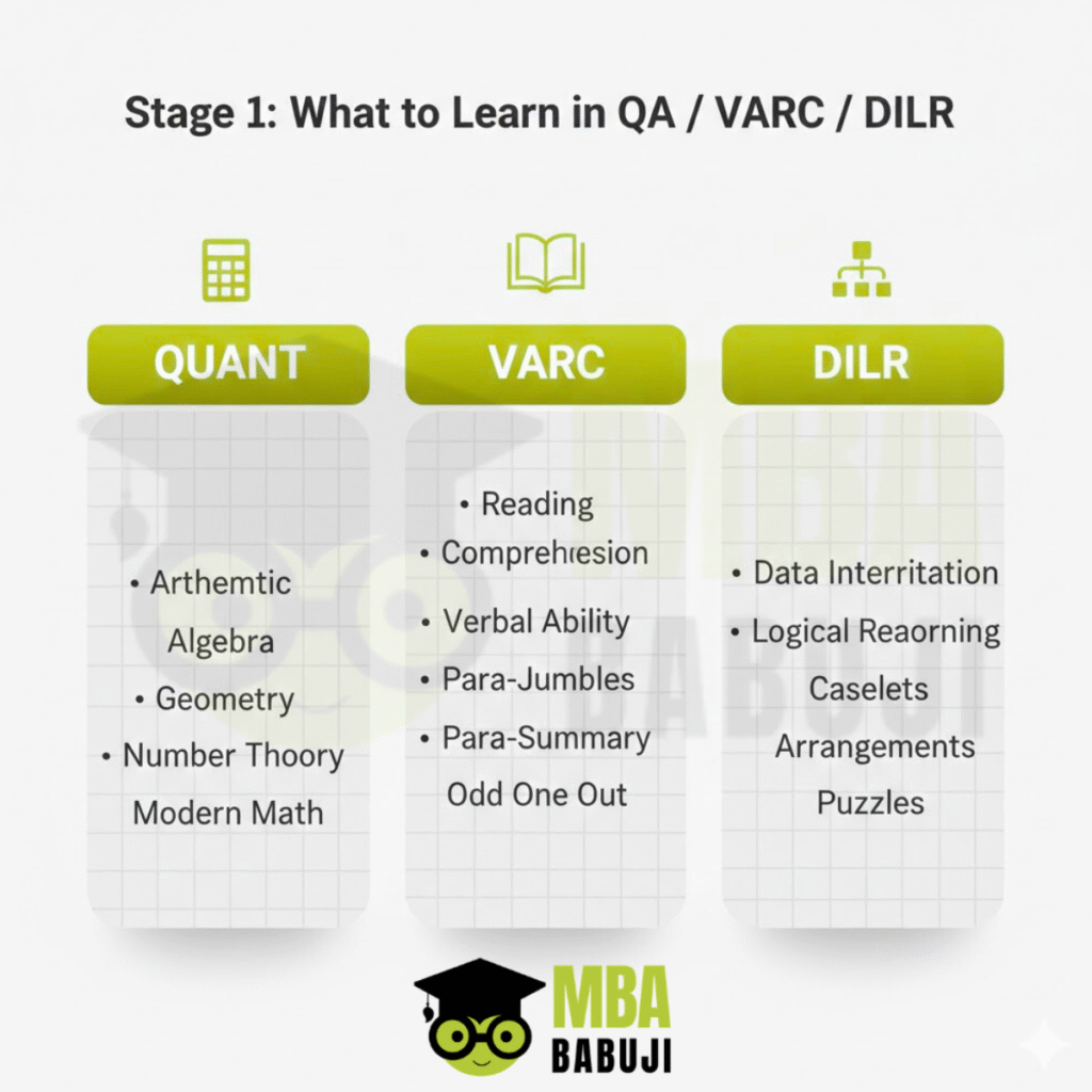 The first stage is about learning concepts properly, especially for Quant and DILR.