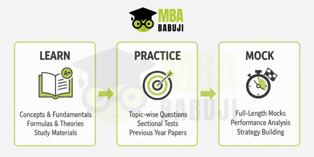 The 3-Stage Preparation Strategy for CAT: Learn → Practice → Mock (Perfect for Beginners & Repeaters)